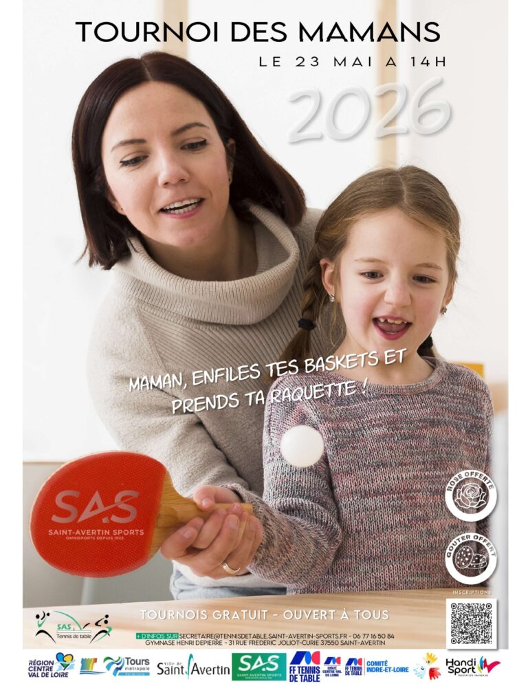 Comme chaque année le club propose aux mamans de nos pongistes de venir faire un petit tournoi . Le « tournoi des mamans » aura lieu le samedi 23 mai 2026 après-midi. Chaque maman est associée avec son enfant pour former une équipe. La formule est du type coupe Davis.